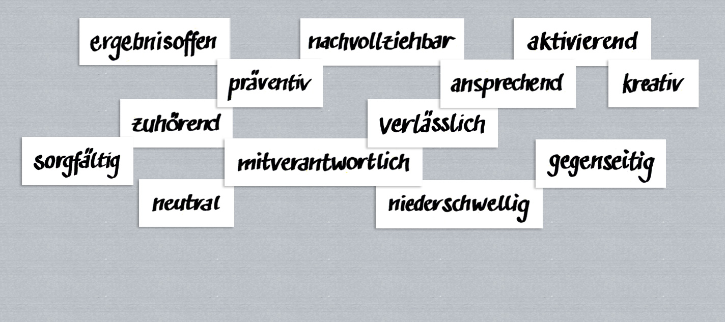 Im Konfliktfall ist es sein Anliegen, die Konfliktparteien in die Lage zu versetzen, gemeinsam eine Lösung zu erarbeiten und dabei als Mediator auf einen eigenen Standpunkt zu verzichten.